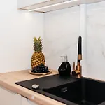 Dostępne są również piekarnik i zmywarka do naczyń w pełnowymiarowej kuchni. Do ten apartament z lotniska Gdańsk im. Lecha Wałęsy samochodem dojeżdża się w 24 minut.